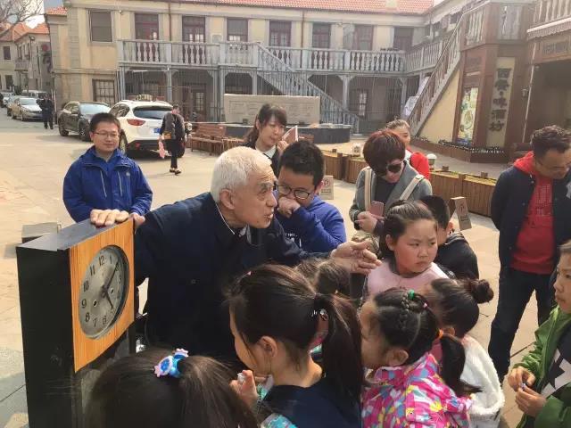 吳老師給孩子們的另外一個印象是:知識非常豐富。從奇山所城的由來,到煙臺開埠,到濱海廣場的每一棟房子,再到煙臺的鐘表、絨繡等等,“老同學”都能娓娓道來,很多內容家長們都是第一次聽說。