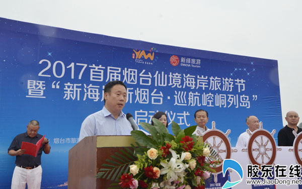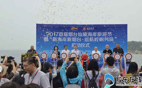 2017首屆煙臺仙境海岸旅游節暨“新海岸新煙臺·巡航崆峒列島”啟動儀式現場。膠東在線9月6日訊(記者 孫宗順)煙臺在全域旅游創建中樹立國際化海岸的品牌目標,秉持“新海岸、新視界、新煙臺”理念,在傳承中創新,尋找空間的跨越和文化的突破,發掘煙臺全域旅游的“新絲路、新業態、新空間”。6日,2017首屆煙臺仙境海岸旅游節暨“新海岸新煙臺·巡航崆峒列島”啟動儀式舉行,將全方位展示煙臺仙境海岸的美景與魅力,讓游客深度領略仙境煙臺的秋韻。
