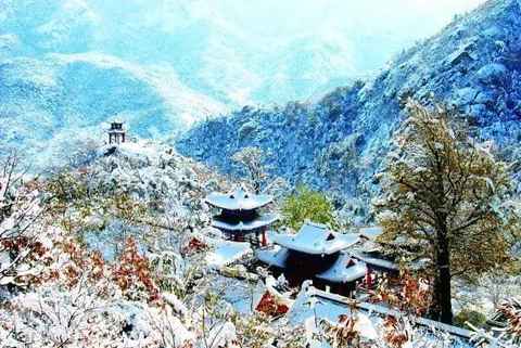 遙望白衣素裹的昆崳山,猶如澎湃波濤如雪拱托著的群島,顯得那么神秘玄妙。置身其中,別有一番情趣。仰望白雪覆蓋下的懸崖蒼松,像是頭戴潔白節(jié)日小帽,身著青黛禮服,須發(fā)飄逸的圣誕老人手拎圣誕節(jié)禮物,于白云深處飄然欲下。