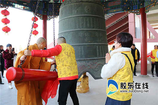 每年新舊交替之時,佛家寺院都會以敲鐘、燒香的方式辭舊迎新,歡慶新年。新年敲鐘有“聞鐘聲、煩惱輕、智慧長、菩提生”的說法,意在祈禱萬家歡樂、五谷豐登。在百“姓”百業(yè)祈福法會結束后,由南山禪寺監(jiān)院悟才法師帶領眾姓走到鐘樓處,接力敲響新年的祝福鐘聲,為自己和家人,為普天下眾姓祈福幸福安康。