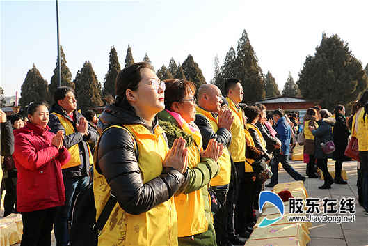 元旦當日,在大佛廣場舉行2018盛世太平,百“姓”祈福法會。來自全國各地百位姓氏不同、行業(yè)不同的尊貴客人,身著“百家姓”黃馬甲,肩負著姓氏家族的榮譽,代表普天下眾姓為百姓、國家祈福,為自己和家人祈福,為新年增添一份榮耀與吉祥!