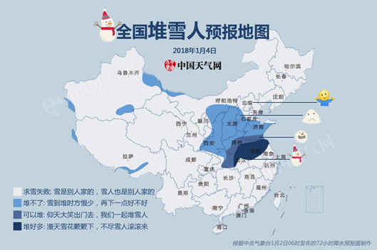 原標題:全國堆雪人預報地圖發布 你要不要堆一個?