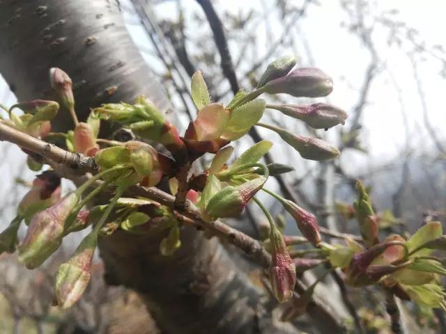 早櫻如寒緋櫻、山櫻等品種已經開始按捺不住春天的誘惑,正在吐出花蕊中,若天氣晴好,預計三五天,最長不會超過十天,即可開放。