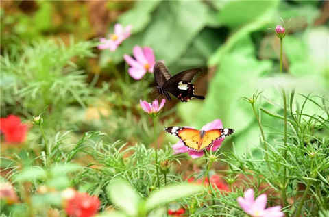 蝴蝶谷有絲帶鳳蝶、枯葉蝶、麝香鳳蝶等世界著名種類多達50種,每一處建筑都巧妙地利用了這里的原始山水及植被,使原始的生態資源得以充分利用和保護,園內的小橋、流水、幽谷、鮮花和那翩翩起舞的彩蝶以及各類粗獷的原始植被,蝴蝶谷構成了一個幽靜、自然的世外桃源。