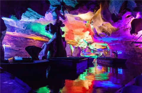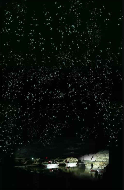 洞內不但有大量的鐘乳、奇石等奇特景觀,而且還有大量螢火蟲在陰濕的巖洞中寄居生存,布滿在洞頂猶如晴朗夜空中閃爍的星星,星星點點,成千上萬,形成了一種奇妙的景觀。游人進入暗黑的溶洞乘上一葉由繩索牽引的輕舟,破水前行,前邊豁然開朗,滿天繁星閃爍,熠熠生輝,猶如進入一個童話世界,使人浮想聯翩,流連忘返!
