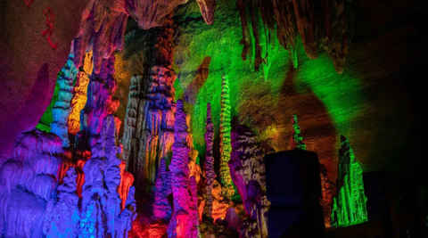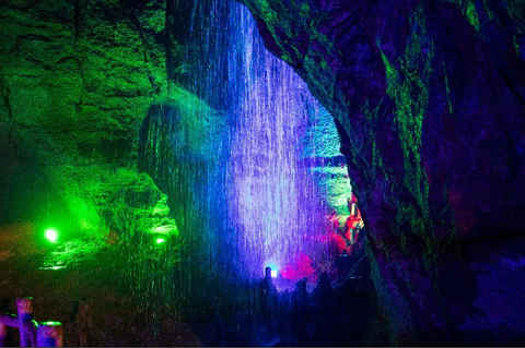 洞內有一河、九泉、九宮、十二瀑、十二峽等景觀100余處,峽谷內鐘乳石林立,五光十色,晶瑩剔透,洞內石筍、石柱、鵝管等遍布,各具特色,景象萬千。各處景致形態逼真,奇石、怪峰、幽谷、深洞惟妙惟肖,水泉、瀑布、溪流絢麗多彩,讓人嘆為觀止。
