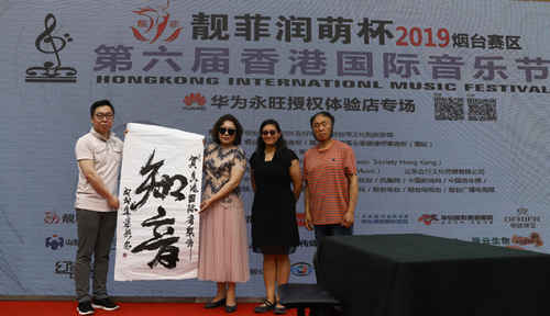 贈(zèng)書(shū)法作品“知音”大賽現(xiàn)場(chǎng),不僅有從青島趕來(lái)的南美洲智利選手,也有國(guó)內(nèi)優(yōu)秀的器樂(lè)演奏家、聲樂(lè)歌唱家;不僅有西洋樂(lè)器,也有中國(guó)古典樂(lè)器;不僅有專業(yè)院團(tuán)的歌手樂(lè)手,也有擁有眾多粉絲流量的網(wǎng)紅歌手樂(lè)手,音樂(lè)發(fā)燒友及眾多熱愛(ài)音樂(lè)的藝術(shù)家庭組團(tuán)參戰(zhàn);更有由眾多煙臺(tái)音樂(lè)老前輩們組成的管弦交響樂(lè)團(tuán),還有聞?dòng)嵹s來(lái)的香港書(shū)畫(huà)藝術(shù)家為大賽祝賀為選手加油。選手們精湛的表現(xiàn),吸引了眾多市民紛紛駐足觀賞和熱情喝彩,讓市民在家門(mén)口就欣賞到了一場(chǎng)高雅的中外音樂(lè)盛宴。