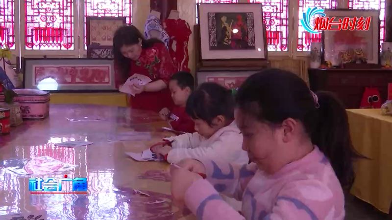 一走進非遺項目煙臺剪紙代表性傳承人梁巧艷的工作室,梁巧艷正在教孩子們動手剪窗花。