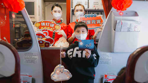 猜燈謎又稱打燈謎,是中華民族傳統(tǒng)文化百花園中一枝纖巧秀麗的奇花,它融文學(xué)性、知識性、教育性、趣味性為一體,以其特有的藝術(shù)魅力、奇特的藝術(shù)風格而成為人們啟迪智慧、傳播知識的一種喜聞樂見、雅俗共賞的文化娛樂形式。乘務(wù)員將謎題寫在紙條上,提前放在燈籠里面,組織旅客朋友們搶答猜燈謎。