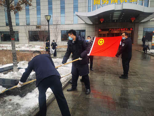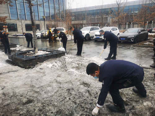 活動中,結合《創建全國文明城市實地點位標準》,交通管理中心團支部積極籌劃,采用分組分工、團員帶隊的模式,帶頭撿拾綠化帶垃圾,清理停車場轄區積雪、積冰。團員青年們不怕臟、不怕累,個個奮力爭先,通過大家的共同努力,停車場面貌煥然一新。
