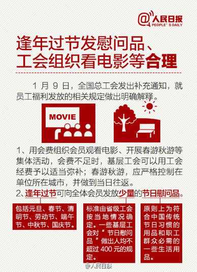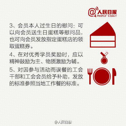 為使工會(huì)經(jīng)費(fèi)更好地為基層工會(huì)工作服務(wù)、為職工群眾服務(wù),根據(jù)全國(guó)總工會(huì)有關(guān)精神,考慮山東省社會(huì)經(jīng)濟(jì)發(fā)展和工會(huì)經(jīng)費(fèi)收入等因素,日前,經(jīng)山東省總工會(huì)14屆第74次主席辦公會(huì)議研究,對(duì)有關(guān)工會(huì)經(jīng)費(fèi)的支出標(biāo)準(zhǔn)進(jìn)行修訂,基層工會(huì)組織在法定節(jié)日可以發(fā)放中國(guó)傳統(tǒng)節(jié)日用品和職工群眾必需的生活用品,每位會(huì)員每年總額不得超過(guò)1600元。不得發(fā)放現(xiàn)金,不得發(fā)放中央和本省有關(guān)規(guī)定明令禁止發(fā)放的物品。基層工會(huì)組織使用工會(huì)經(jīng)費(fèi)給予工會(huì)會(huì)員過(guò)生日慰問(wèn),可給予會(huì)員生日蛋糕等慰問(wèn)品,每人金額不超過(guò)300元。