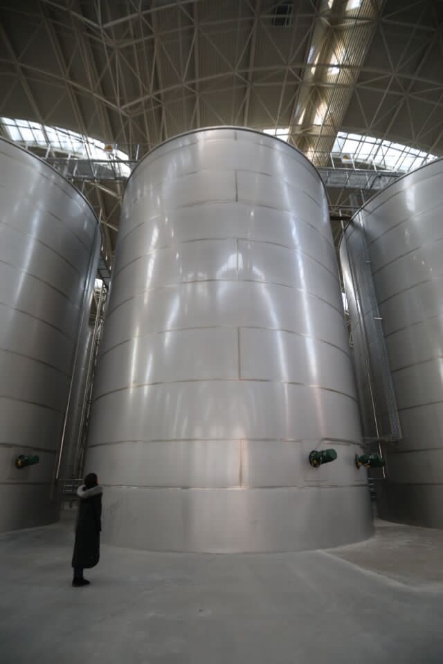 走近張裕國際葡萄酒城,遠遠就望見一片橡木桶造型的建筑,這是酒城的工業生產中心,也是全球最大的葡萄酒與白蘭地酒類單體生產廠房,生產中心包括釀造區、儲酒區、調配區、灌裝區、地下酒窖、倉儲物流區六大功能區。