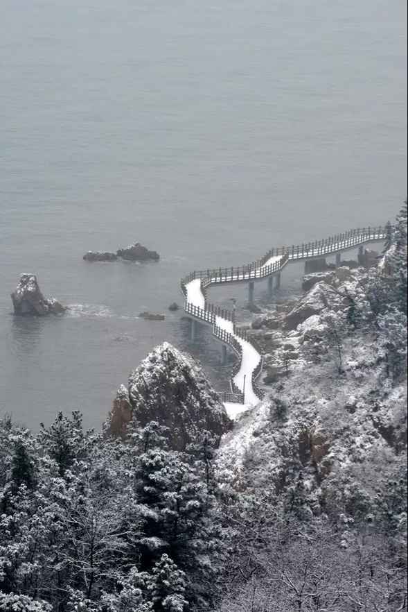 下雪的日子里,紛紛灑灑的雪花天地間飄灑,給長島的海增添了一份純凈和柔美。