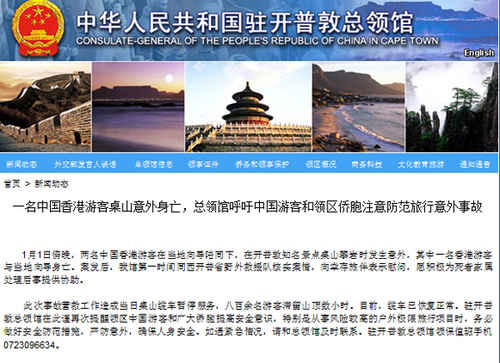 原標(biāo)題:一中國香港游客亡于南非攀巖 中使館發(fā)布提醒
