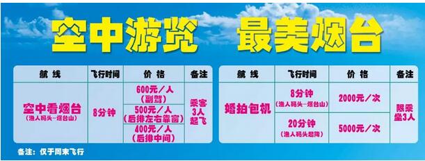 備注:僅于周末飛行空中游覽最美煙臺你值得這最美景色