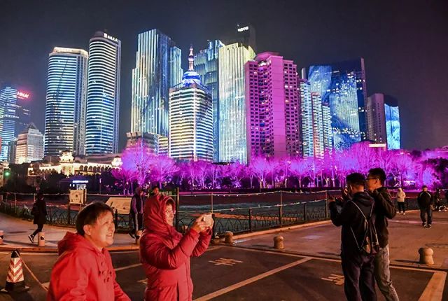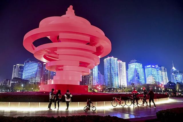 原標題:青島沿海夜景有變化 夢幻海洋藍美出天際(圖)