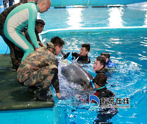 為確保引進工作順利進行,蓬萊海洋極地世界出臺了相應(yīng)的保障方案,對海豚運輸、接引和安置進行了明確的責(zé)任分工和標(biāo)準(zhǔn)要求?!昂k噙@種大型活體生物,對于各方面的要求都比較高,稍有不慎就會對其生命健康造成影響。我們在海豚到館后對其進行抽血、測體溫、稱體重等細致檢查,確保其各項健康指標(biāo)正常。感謝蓬萊市海關(guān)、蓬萊市檢驗檢疫局、蓬萊機場指揮部與貨運部的大力支持,保障了海豚運輸工作的順利開展?!迸钊R海洋極地世界負責(zé)人說。