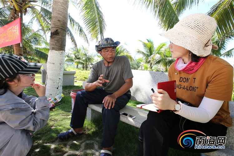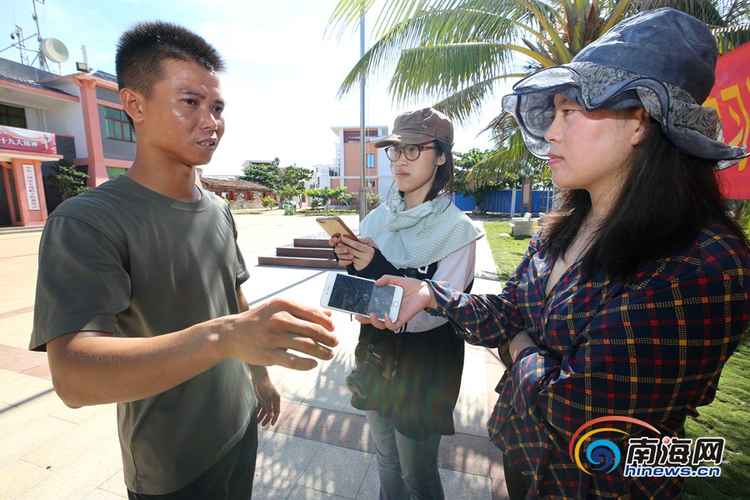 “新時代·幸福美麗新邊疆”海南行網絡主題采訪團記者采訪三沙市趙述島上的漁民。南海網記者陳望攝