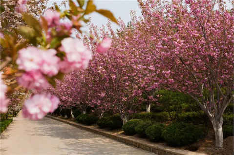 從景區入口處至赤山禪院東側的龍鳳湖即為“櫻花大道”。每年春天繁花遍開,而尤以櫻花大道兩側櫻花最為吸引游人。