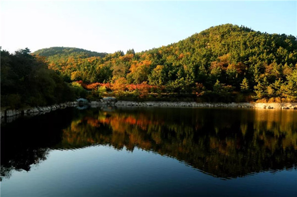 它就坐落在青山環抱的山谷中。翡翠般的湖水猶如明鏡,將綠樹紅花和亭臺山景倒映水中,勝似一幅絕佳的山水畫。龍鳳湖連著玉帶河直流入海,有著神話般的傳說。