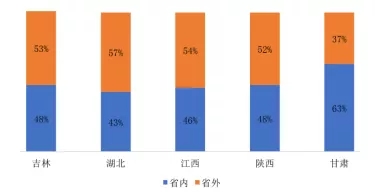 客流空間分布預測。預計節前吉林、湖北、江西、陜西等省際和省內出行總量基本持平。甘肅省節前客流主要以省內出行為主,省內出行占比超60%。