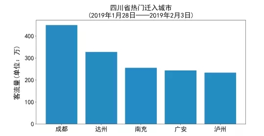 預計1月28日至2月3日期間,四川省客流遷入量大于遷出量。其中,成都、達州、南充、廣安、瀘州等城市客流遷入量排名靠前。主要客源地來自重慶、廣東、云南、浙江、貴州等。