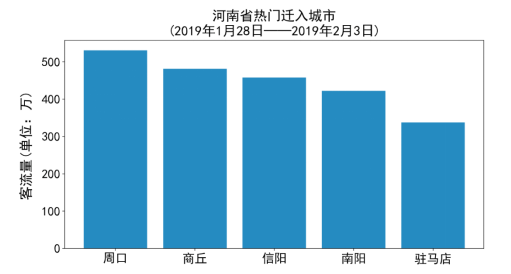預計1月28日至2月3日期間,河南省客流遷入量大于遷出量。其中,周口、商丘、信陽、南陽、駐馬店等勞務輸出主要城市客流遷入量排名靠前。主要客源地來自浙江、江蘇、廣東、北京、山東等。