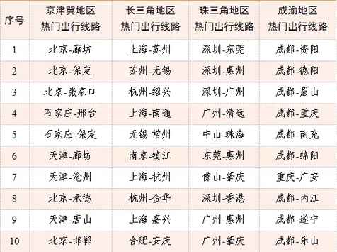 中短途客流占主導。節前旅客出行以中短途為主,客流主要由特大城市或省會城市向周邊城市遷徙。結合歷年春運數據和客流熱力分析,對京津冀、長三角、珠三角、成渝等重點地區節前熱門出行線路進行研判。具體如表3所示。