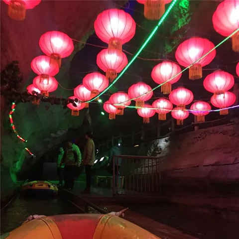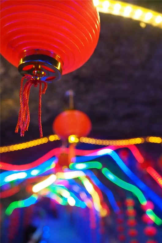 流光溢彩的鐘乳石配上火紅的燈籠