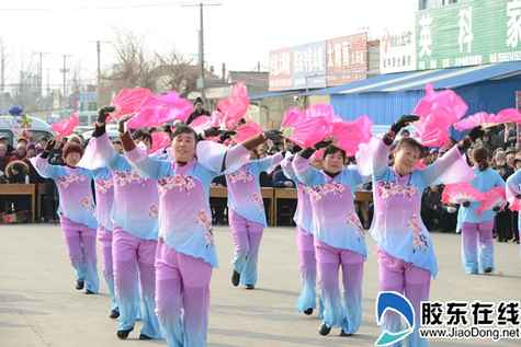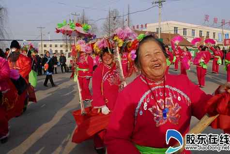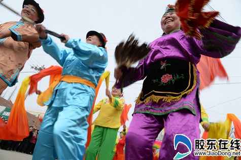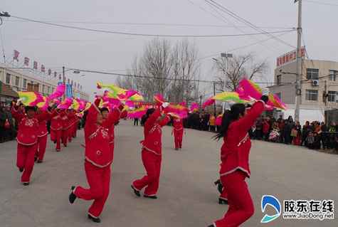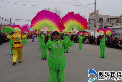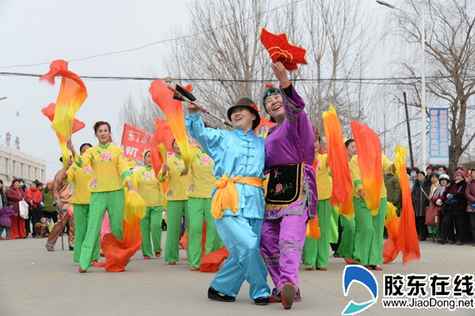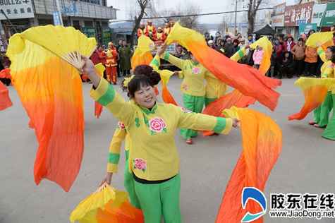 膠東在線2月15日訊(實(shí)習(xí)記者 滕文珍) 為展示招遠(yuǎn)夏甸鎮(zhèn)老百姓在新的一年里煥然一新、風(fēng)清氣正的精神風(fēng)貌,豐富人民群眾文化生活,推動(dòng)全鎮(zhèn)的文化事業(yè)發(fā)展。2月14日(正月初十)伴著新春的腳步,聽(tīng)著歡快的鑼鼓,由夏甸鎮(zhèn)黨委、政府舉辦的主題為“我的夏甸我的家,高高興興鬧新春”秧歌進(jìn)鎮(zhèn)活動(dòng),在夏甸新村鎮(zhèn)政府駐地舉行。來(lái)自青龍夼、新村北、新村南、勾下店、銀山后、嵐子?xùn)|、后路家等14個(gè)村的秧歌表演隊(duì)500余人在這里扭起新春大秧歌,為觀眾獻(xiàn)上了一場(chǎng)豐盛的民俗文化大餐。