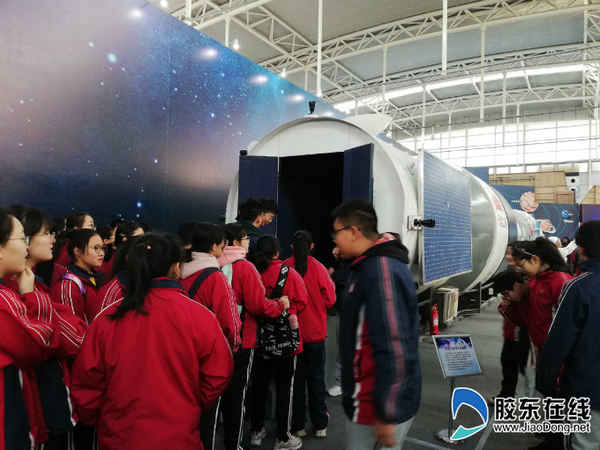 活動一開始,便迎來了煙臺二中的同學,他們排著隊來體驗航天科技帶給他們的快樂、興趣和向往。