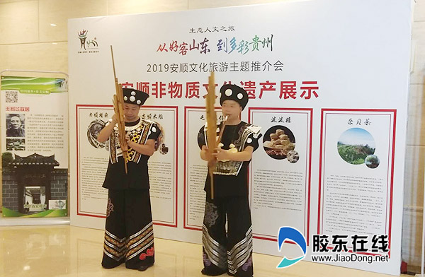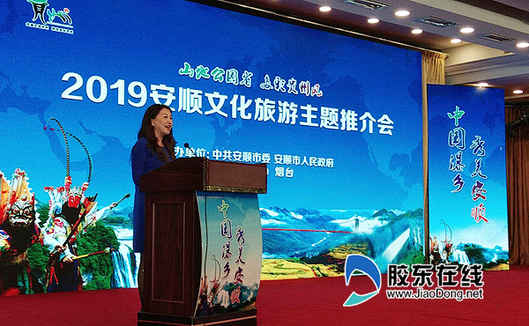 膠東在線5月10日訊(記者 陳琳) “一條瀑布天上掛,一座龍宮映月牙,千秋高原吹拂夜郎風(fēng),屯鋪山歌醉云霞,點(diǎn)蠟作畫(huà)分外美,天書(shū)的神秘刻在紅崖,亞魯史詩(shī)唱英雄,江河激流浪淘沙......啊,安順,中國(guó)最美的地方,來(lái)了你就會(huì)戀上她?!?月9日“2019安順文化旅游推介活動(dòng)”在煙臺(tái)舉行,一曲濃縮了貴州安順精華的男聲獨(dú)唱在現(xiàn)場(chǎng)回蕩,令人神往。