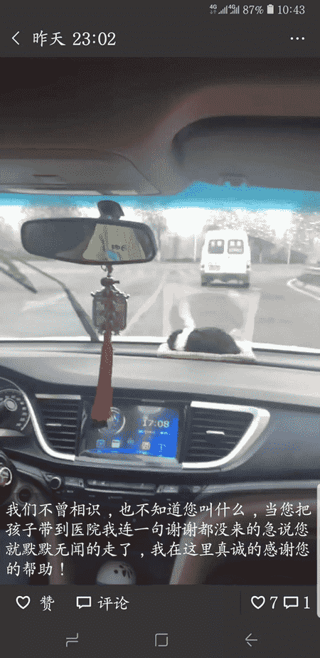 6月19日晚上11點02分,山東地下大峽谷員工徐聰聰發了一條朋友圈,15秒的視頻里,一輛編號120052的警車在前面飛馳開道,而此時徐聰聰抱著高燒抽搐的女兒坐在后面的車上緊緊跟隨。直到晚上11點,待孩子病情穩定后,徐聰聰才緩過神來,想起為自己贏得“救命時間”的交警,而由于當時太著急,他只記住了出警的警車,這輛警車的編號是120052。