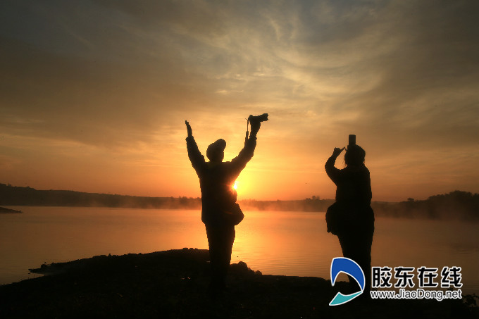霧起鳳凰湖,恍然如仙境鳳凰湖本名戰山水庫,位于蓬萊城東南十余公里,是蓬萊城市的水源地之一,因從空中俯瞰,整個庫區形似一只飛舞的鳳凰而得名,舉辦過多次國際、國內大型會展活動的君頂酒莊就坐落在湖畔高地上。進入寒露節氣以來,晝夜溫差較大,白天最高22攝氏度左右,夜間則降至10攝氏度以下,而水的比熱較大,降溫、升溫都較為緩慢,故在日出前后,相對溫度較高的庫存水蒸發升騰,遇溫度相差10幾攝氏度的冷空氣,就直接霧化并隨微風輕輕飄動,周圍的山丘、樹林、岸坡仿佛在薄霧中飄動游移,隨著日出不段變換色彩,加上水波粼粼、野草簌簌、秋蟲啾啾、水鳥聲聲,給人一種心曠神怡、如夢似幻的感覺。