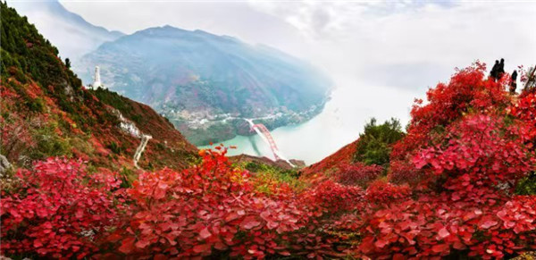 三峽紅葉(巫山縣文旅委供圖)重慶市文化旅游委黨委委員、副主任幸軍致辭時說,近年來,長江三峽旅游一體化發展合力推進、成效明顯。當前,重慶突出一體化頂層設計,編制形成了《“大三峽”旅游一體化發展實施方案》《“大三峽”旅游一體化發展規劃》,正加緊謀劃“十四五”大三峽旅游發展。同時,突出一體化宣傳營銷,持續深化渝鄂旅游合作、渝東北區域旅游協作,持續舉辦長江三峽國際旅游節、世界大河歌會、三峽國際紅葉節等品牌節會活動。在庫區各區縣和文化旅游業界共同努力下,長江三峽旅游取得長足發展。2019年,渝東北三峽庫區城鎮群接待游客1.23億人次,實現旅游收入1126億元,同比分別增長15.7%、38.5%;旅游產業增加值164.7億元,占GDP比重4.17%,同比增長8.32%;三峽游輪旅游接待109.72萬人,同比增長10.83%。
