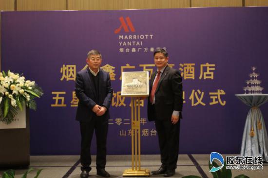 膠東在線3月4日訊(通訊員 岳盛林 孔娟 周靈芝) 2021年3月2日上午,煙臺鑫廣萬豪酒店“五星級旅游飯店”授牌儀式在煙臺開發區(自貿區煙臺片區)舉行,煙臺市文化和旅游局二級調研員于仁山、煙臺開發區管委副主任陳軍出席活動并致詞,于仁山二級調研員為煙臺鑫廣萬豪酒店授牌。