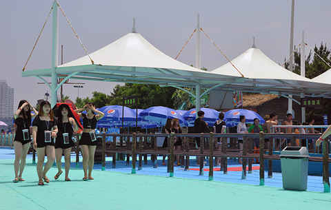 4.寶貝水城:家庭互動(dòng)的樂園,淺淺的水池里有多種嬉水設(shè)施,射水大炮、噴水蘑菇、卡通雕塑等,在孩子的歡聲笑語中,父母盡享親子之樂。
