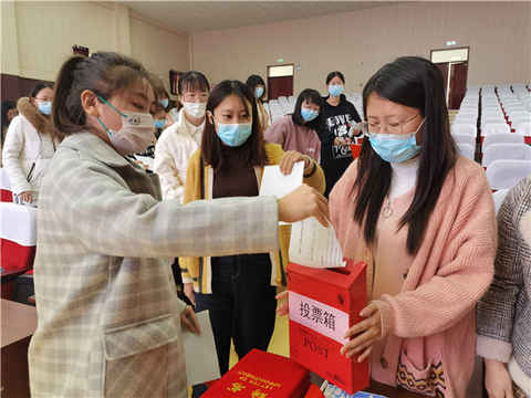 大會在激昂的國歌聲中拉開帷幕。會上,團委負責人向全體教工團員介紹了本次換屆選舉推選流程。隨后,劉清欣等六位候選人分別從個人簡介、實踐經歷和工作展望等方面進行競選演講。經過全體教工團員無記名投票,選舉宮娜娜等五名同志為教工團支部新一屆委員會委員。