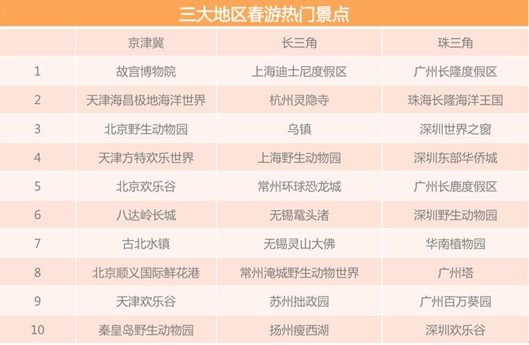 對(duì)于春游的人們來(lái)說(shuō),“撒歡兒”是核心關(guān)鍵詞,大家都有種憋了一個(gè)冬天要好好釋放的意味,各地的主題樂(lè)園紛紛上榜熱門(mén)景點(diǎn)TOP榜。除此之外,體現(xiàn)春色之美的自然風(fēng)光類(lèi)景點(diǎn),和能滿(mǎn)足親子游需求的動(dòng)物園、植物園,也頗受春游一族青睞。