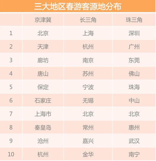 從飛豬對(duì)三大地區(qū)的春游客源地分析也可以看出,北京是排名最靠前的“遠(yuǎn)方來(lái)客”,在長(zhǎng)三角和珠三角的客源地中均排名第七。