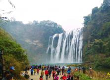 - D5安順-黃果樹-貴陽 早餐后乘車約1小時前往瀑布之鄉,溶洞之鄉,蠟染之鄉,藥材之鄉安順市【黃果樹景區】(含黃果樹瀑布,含天星橋,含陡坡塘瀑布,含觀光車,不含景區內上下扶梯單程30元/人往返50元/人)。到達黃果樹景區后游覽【天星橋景區】(游覽約1小時),漫步其中,到處可見泉水噴涌,飛瀑傾瀉,有水皆成瀑,是石總盤根便成為天星橋的真實寫照:水上盆景園、美女榕,高老莊,數生步;游覽【陡坡塘瀑布】(游覽約30分鐘);游覽有亞洲第一大瀑布之稱的【黃果樹瀑布】(游覽約2小時)感受飛流直下三千尺,疑似銀河落九天之氣魄,后乘車約2.5小時返回貴陽。溫馨提示:景區內游客較多,請拍照時勿走路。黃果樹為天然大 瀑布,會有水濺到景區道路上,請各位游客小心濕滑,以免摔倒。如果乘坐環保車人較多請游 客耐心等候,以免發生碰撞摔倒。早中/貴陽