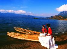 - 用餐: 早 午 晚住宿: 瀘沽湖早餐后乘車前往有“高原明珠”之稱的【瀘沽湖】景區,途中寧蒗縣用午餐,午餐后繼續乘車前往瀘沽湖景區,抵達后前往瀘沽湖三家村游船碼頭乘豬槽船登【里務比島】。游覽【里務比寺】里務比島位于瀘沽湖的中南部,島嶼的一側為石筍,成為天然的碼頭,一條蜿蜒的小道直接通往島嶼的頂部,道路旁邊有許多杜鵑花以及野櫻桃樹。花叢的盡頭為藏傳佛教寺院里務比寺,島頂有一白塔。里務比島與謝瓦俄島,里格島并稱為瀘沽湖蓬萊三島。之后乘車開始360度環湖,途經里格觀景臺,情人沙灘,草海走婚橋。乘車前往小落水參加【摩梭走婚宴】到原始的摩梭人家做客,品嘗摩梭特色民族餐。乘車前往我們特意為您安排的【摩梭篝火晚會】瀘沽湖是女兒國,又是歌舞的王國。瀘沽湖畔的摩梭村寨,每晚都要舉行篝火晚會,您可以和帥氣的摩梭小伙子、美麗的摩梭姑娘一起,圍著篝火跳起歡樂的舞蹈!乘車返回酒店休息。溫馨提示:瀘沽湖屬于少數民族集聚地,請尊重少數民族的生活方式,不要隨地亂扔垃圾。保護瀘沽湖這塊圣地是我們共同的責任。紫外線較強,提前備好防曬霜等防曬物品!