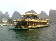 - 早餐后,乘車赴漓江碼頭(約50分鐘車程),乘豪華國際三星級游船游覽【百里畫廊---漓江風光】(全程游覽約4小時,中餐船上提供價值30元航空餐,感受唐代詩人韓俞筆下:“江做青羅帶,山如碧玉簪”的漓江風光,漓江像蜿蜒的玉帶,纏繞在蒼翠的奇峰中,造化為世界上規模最大、景色最為優美的巖溶景區。在美國CNN評選的《全球最美的十五條河流》中,漓江是我國唯一一條入選的河流。沿途欣賞楊堤煙雨,浪石仙境,九馬畫山、黃布倒影,興坪佳境……。(碼頭---停車場步行約30分鐘),游覽“不是漓江,勝是漓江”的田園詩意絕唱【遇龍河竹筏漂流】(雙人漂,遇龍橋-犀牛塘碼頭,約40分鐘)溪水潺潺,竹影婆娑,青峰倒影,泛舟遇龍河上,體味“舟行碧波上,人在畫中游”的美妙情結;乘車赴銀子巖約40分鐘,游覽【銀子巖風景區】(約60分鐘),其被國際地質學家譽為”世界巖溶藝術寶庫”,以雄奇幽美獨領風騷,是桂林旅游圈新出現的一顆璀璨的明珠。返陽朔,享用晚餐【品嘗陽朔啤酒魚】。晚餐后,自由逛【陽朔西街】,在仿古的建筑群里感受獨特的歐陸風情(司導不陪客人)。自費小交通:陽朔碼頭電瓶車15元/人(自愿選擇)【今日溫馨小貼士】遇龍河漂流不足 1米的兒童,70歲以上老人都不允許上竹筏,患有冠心病、心臟病及高血壓等疾病患者嚴禁乘坐竹筏。如同行中有身高不足1米的兒童、70歲以上老人、患有冠心病、心臟病及高血壓等疾病患者則統一安排由導游陪同在碼頭等候,如不放心,可隨行一成人陪同,未游覽項目費用將按實際成本退還,由此帶來不便還請諒解;參加漂流時請妥善保管好您的隨身物品,防止掉入水中。漂流途中,船工會對水上烤魚、拍照等作推銷,非旅行社安排,請根據您的實際需求選擇。