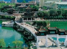 - 早餐后,參觀貴陽 “市徽”甲秀樓(游覽約30分鐘),建于明萬歷年間,南明河中翹然挺立,煙窗水嶼,如在畫中,登樓遠眺,四周景致,歷歷在目參觀黔靈公園、弘福寺(游覽1.5小時)貴陽最大的綜合性公園,參觀古風幽幽的青巖古鎮(游覽1.5小時)—慈云寺、萬壽宮、狀元府,這里氣勢宏偉的定廣門城樓與石板古道、古牌坊交相輝映,入住酒店